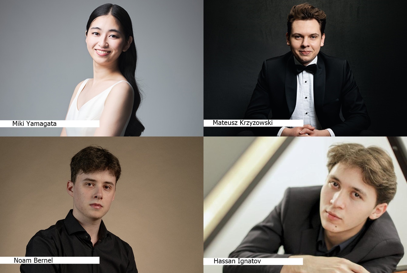 Teilnehmende Pianistinnen und Pianisten und das Detailprogramm (alle Werke von Frédéric Chopin):